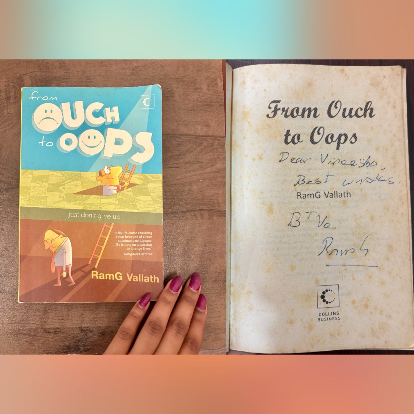 In my freshman year (exactly a decade ago! 🎓) Ram G Vallath came for a motivational talk and gave us a signed copy of his book ‘Ouch to Oops’. Back then, I just skimmed a few pages before it gathered dust on my bookshelf 📚